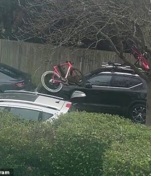 Em comunicado nas redes sociais, a equipe disse: ‘Hoje (sexta-feira) às 14h55, dois ladrões usando balaclavas em uma motocicleta roubaram a bicicleta da nossa equipe diretamente de um bagageiro trancado em uma rua residencial em Putney.’