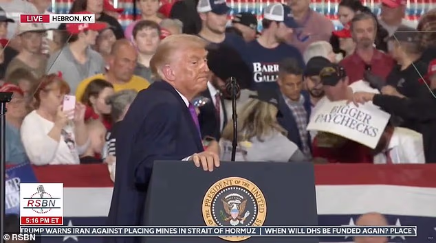 Donald Trump interrompeu seu comício em Kentucky na quarta-feira, quando um apoiador ficou atrás dele, enviando o Dr. Mehmet Oz para resgatá-lo.