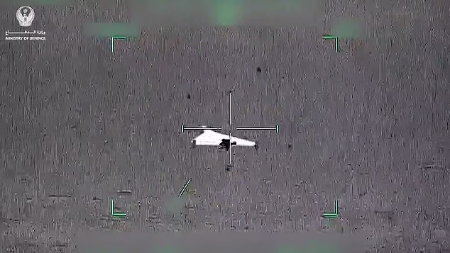 O Ministério das Relações Exteriores dos Emirados Árabes Unidos divulgou imagens dramáticas mostrando veículos aéreos não tripulados (UAVs) iranianos alinhados na mira de um sistema antimíssil.