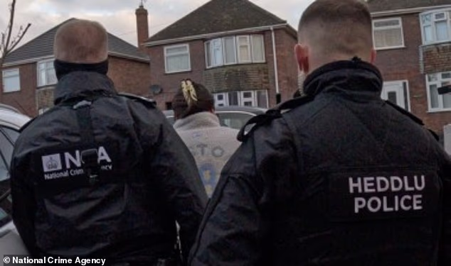 Oficiais da Agência Nacional do Crime levaram a mulher e outras duas pessoas sob custódia durante uma operação no Reino Unido na manhã de segunda-feira.