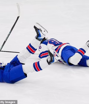 ‘Jack Hughes e Auston Matthews, jogadores olímpicos de hóquei ou duplas de patinação artística no gelo? O mundo pode nunca saber’, brincou um fã para X.