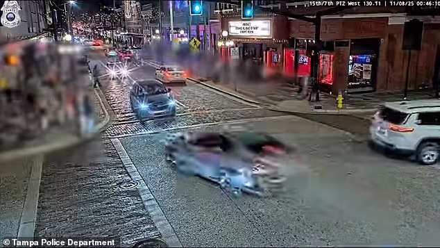 A polícia compartilhou imagens que mostram Silas Sampson, 22, dirigindo de forma imprudente antes de entrar no Bradley’s Bar em Tampa na noite de sexta-feira.