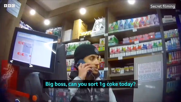 O homem dentro da loja, que se identificou como Akwa, deveria entregar cocaína e cannabis a um pesquisador disfarçado da BBC.