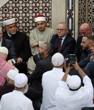 Anthony Albanese e Tony Burke foram agredidos na mesquita de Lakemba depois que os manifestantes gritaram “pró-genocídio” e “Alá Akbar”.