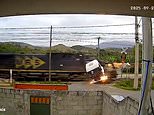 Este é o momento em que um caminhão atravessando um cruzamento em toda a velocidade depois de tentar atravessar a travessia no Rio de Janeiro, no Brasil.