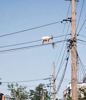 O vídeo foi retratado por um espectador na Série no Brasil no domingo, quando perceberam que a cabra chegou a uma torre próxima para alcançar os fios elétricos onde um monte de vegetais foi capturado.