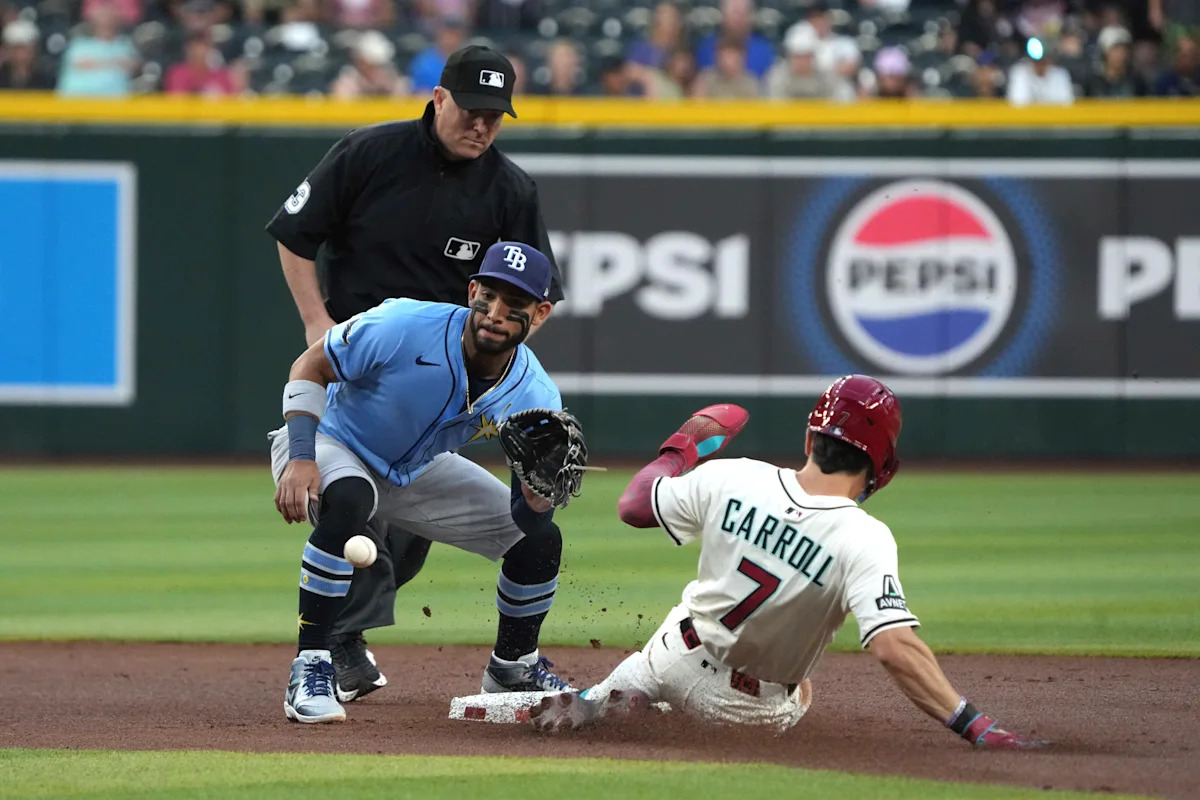 O Starter de Diamondbacks, Corbin Burns, foi perfeito até que Diaz se move em quarto lugar em quarto, e Jose Caberro acertou um duplo de pontuação em seu quinto lugar. Burns foi arrastado com o sexto depois que o corredor foi lavado pelo corredor em terceiro lugar. Ele foi substituído pela abelha Zalen, que deixou o duplo de marco do moral puxando Rashmi por 4-1.