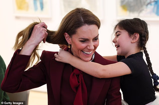 A Princesa de Gales foi abraçada por um segundo jovem fã real durante uma visita à Galeria de Arte Galesa na quinta-feira.
