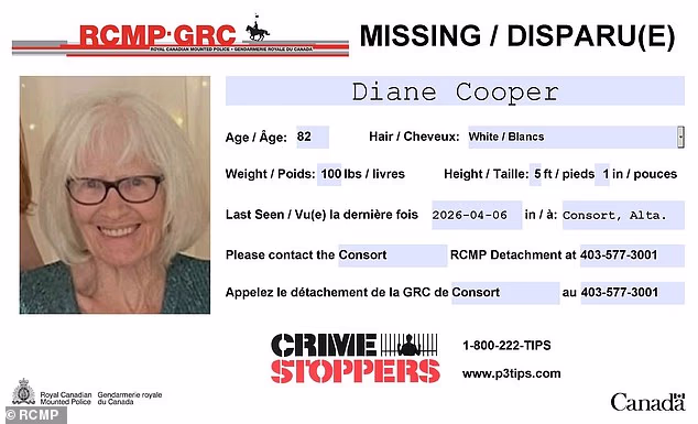 Um porta-voz da Polícia Montada Real Canadense (RCMP) disse que Diane Cooper foi encontrada morta em Saskatchewan às 19h40. Sábado. Notícias CBC.