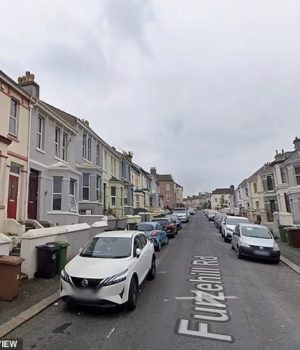 Um comunicado da Polícia de Devon e da Cornualha disse: ‘Estamos realizando buscas de porta em porta na área e uma vigilância de cena está atualmente implantada em Furzehill Road.