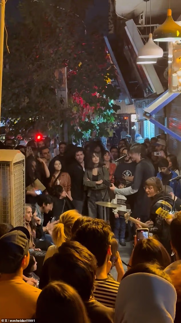 Uma multidão de mulheres iranianas desafiou corajosamente a regra obrigatória do hijab no Irão enquanto ouviam música rock e dançavam numa festa de rua em Teerão, na sexta-feira.