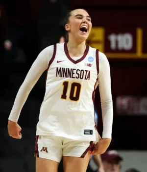 O anfitrião Minnesota estava em apuros no domingo contra o número 5, Ole Miss, perdendo por 54-46 no quarto período.