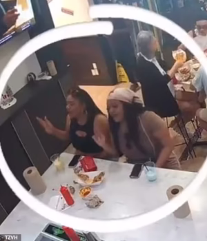 Duas clientes foram vistas ouvindo música no restaurante de frutos do mar Tasty Tails em Dallas, Texas, antes de sair pela porta sem pagar a conta no domingo à noite.