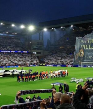 A música da Europa League foi tocada no sistema PA, pois os jogadores estavam em Villa Park na terça -feira, antes de mudar para a música da Liga dos Campeões.