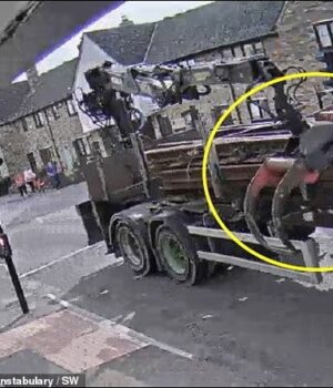 O DC Kev Durie, que investigou, disse: ‘Este foi um incidente trágico em que uma jovem mãe inocente, que passeava com a filha depois de visitar uma loja agrícola, morreu devido ao descuido do moleiro em não fixar devidamente a grua.