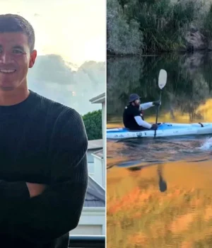 Em um vídeo que Donaldson postou no Instagram na terça-feira, ele pode ser visto nadando ao longo do rio Ord ao lado de um homem em uma canoa, enquanto outro barco passa por ele.