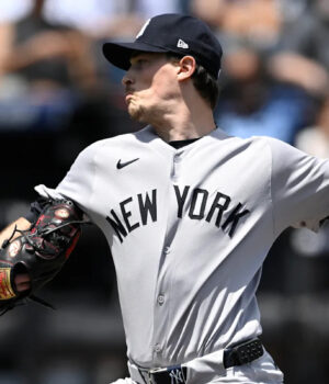 O canhoto de 31 anos fritou duas caminhadas em sua primeira temporada com Yankees e enfrenta um mínimo de dois batedores. O Treinamento de Treinamento de Spring Treination Home of Yankees atingiu a base de três raios em um jogo no Steinbraner Field.