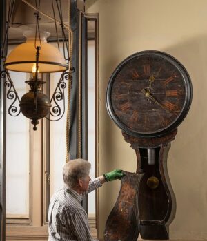 Kingston Lacey, uma mansão listada como Grau I perto de Wimborne Minster, em Dorset, possui um extenso estoque de relógios antigos, incluindo o impressionante relógio de taverna de “oito dias”.