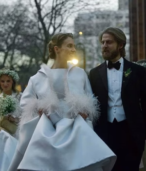 A noiva, de 27 anos, e o noivo, de 35, foram fotografados indo para o local da recepção logo após a troca de votos na Igreja Episcopal de St. George, na cidade de Nova York.
