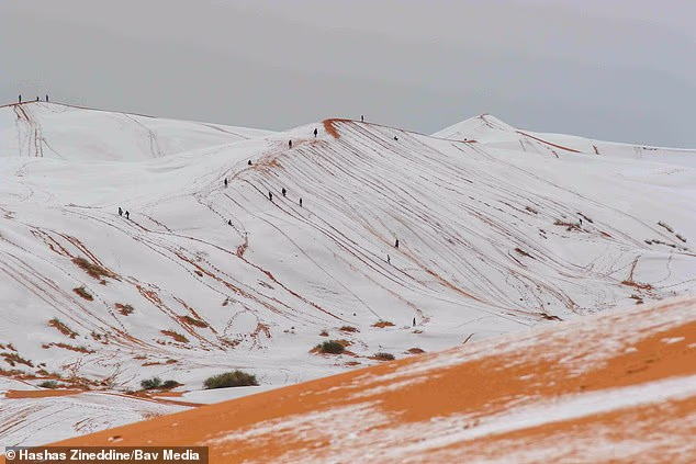 A neve caiu no Saara – tornando brancas as famosas dunas de areia laranja.