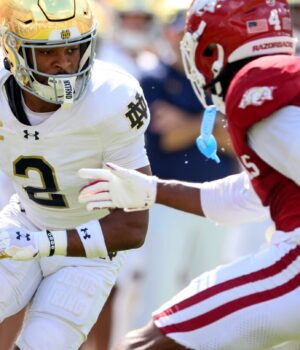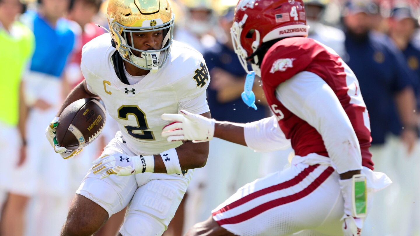 A aparência irlandesa também tem um ritmo para um crime. No fim de semana passado, eles puniram o Arkansas, 56-13. Carro de gaiola Jogando 354 jardas e quatro touchdowns. Jeremiah Love Dois desses quatro passes de touchdown são capturados e marcaram mais dois no chão para obter 127 jardas no total.