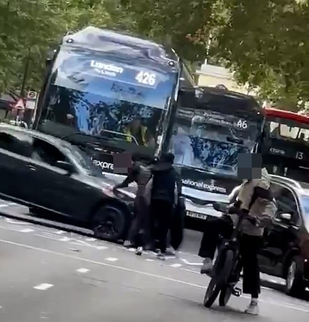 Durante a caótica ‘luta de faca’ em meados de Londres, um carro empurrou entre os dois, que deixou um esfaqueando um.