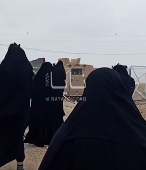 Vídeos partilhados nas redes sociais mostraram dezenas de mulheres, todas usando burcas pretas, a sair do acampamento depois de derrubarem a cerca.
