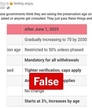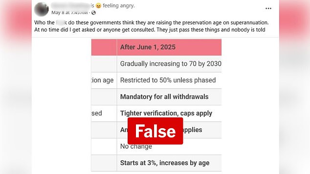 A reivindicação no post do Facebook informou aos usuários das mídias sociais que o governo trabalhista recentemente eleito aumentará a idade de preservação do superintendente dentro de dez anos por 20 anos.