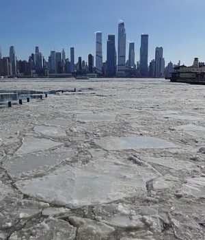 As balsas da cidade de Nova York foram suspensas devido ao contínuo acúmulo de gelo nos rios East e Hudson e no porto de Nova York