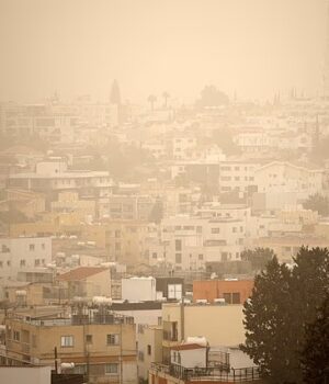 Chipre foi engolfado por uma espessa nuvem de poeira do Saara, enquanto uma tempestade mortal atinge o Mediterrâneo com fortes chuvas e ventos fortes.