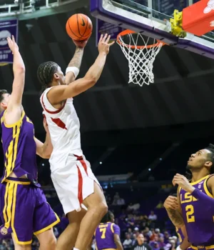 Arkansas havia perdido as três viagens anteriores para o Pete Maravich Assembly Center da LSU, mas os Razorbacks, que acertaram 56% (35 de 62), rapidamente se colocaram em posição para encerrar essa seqüência.