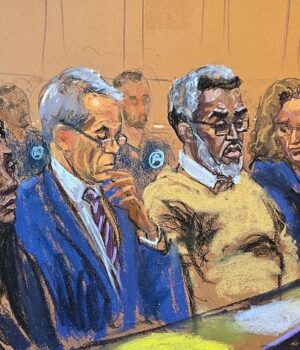 DDK foi flagrado no esboço do tribunal com sua advogada Nicole Westmoreland, Brian Steel e Alexandra Shapiro enquanto ele foi condenado a tribunal na sexta -feira
