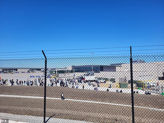 Passageiros confusos e em pânico foram vistos arrastando suas malas do aeroporto para a pista enquanto todos os voos eram aterrados no centro do meio-oeste.