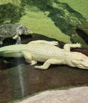 Os crocodilos albinos não vivem muito na natureza, mas os crocodilos americanos podem viver até 70 anos em cativeiro. No aniversário de 30 anos de Claude, em setembro, o museu vibra com festividades, palestras e um bolo especial de jacaré feito de peixe e gelo.