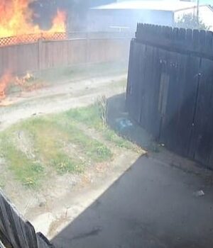 Quando o corpo de bombeiros chegou, o incêndio se espalhou rapidamente e começou a se mover em direção a uma casa, uma garagem e várias cercas.