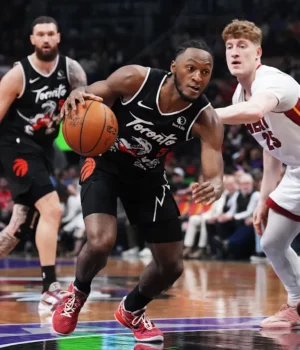 CLEVELAND (AP) – O armador de Toronto, Emmanuel Quickley, perderá o jogo 1 da primeira rodada da Conferência Leste dos Raptors contra o Cleveland Cavaliers, no sábado, devido a uma leve distensão no tendão da coxa direita.