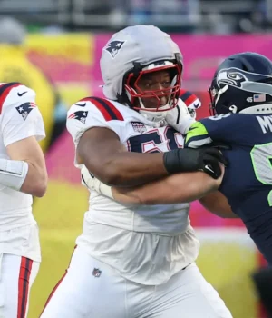 A primeira bandeira de pênalti do jogo veio faltando 3:09 para o fim do segundo quarto, uma falsa largada do left tackle Will Campbell do Patriots, que não fez um bom jogo.