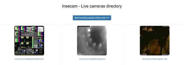 O site da Incecam permite que qualquer pessoa acesse feeds de vídeo ao vivo de um dispositivo como um monitor filho, webcam e CCTV do interior de uma casa humana.