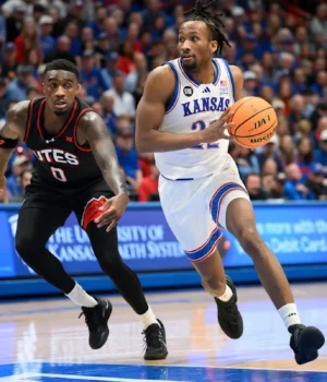 Início Desporto O calouro do Kansas, Darrin Peterson, perdeu o jogo contra o número...