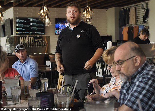 Nathan Sage disse que uma reunião com eleitores e potenciais apoiadores em Marto Browari nos subúrbios dos subúrbios dos subúrbios, Iowa, domingo, 24 de agosto de 2025
