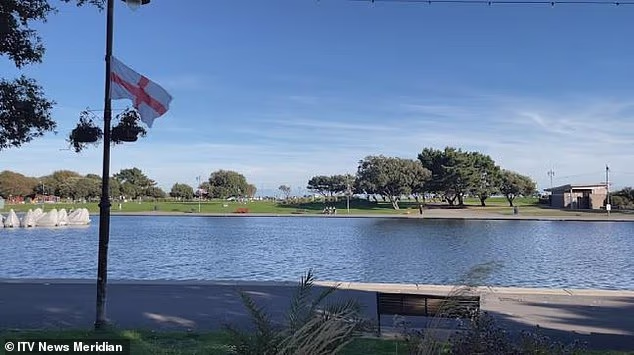 O acusado atacou por Canoe Lake, no distrito de Suu-Hill, na Southsia, causou uma resposta instantânea ao Conselho da Cidade de Portsmouth, que disse que espalharia a bandeira no parque.