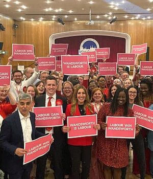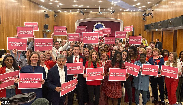 Deputados trabalhistas comemoram a tomada do controle do Conselho de Wandworth dos conservadores em 2022