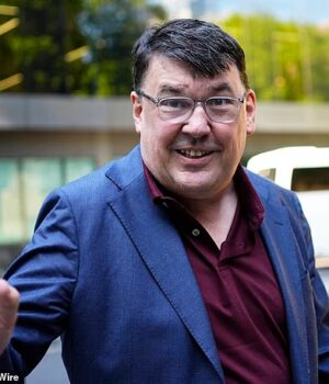 O criador do padre Ted, Graham Linehan, fotografado chegando ao Southwark Crown Court na quinta-feira, chamou uma ativista transgênero de ‘incel nojento’ antes de quebrar seu telefone, ouviu um tribunal.