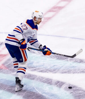 Em vez de patinar com seus companheiros de equipe antes do jogo 1 contra o Los Angeles Kings, o defensor de Edmonton Oilers estava em um voo na tarde de domingo, depois de voltar para casa logo ao nascimento de sua segunda filha Scotlin.