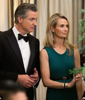 O governador da Califórnia, Gavin Newsom, enviou um e-mail de arrecadação de fundos após a renúncia de Eric Swalwell do Congresso em meio a acusações de má conduta sexual. Ele pediu aos colegas democratas que enviassem, cada um, US$ 35 para seu próprio comitê de ação política (Newsom é fotografado com sua esposa Jennifer Siebel Newsom no jantar na Casa Branca para os governadores do país em 24 de fevereiro de 2024).
