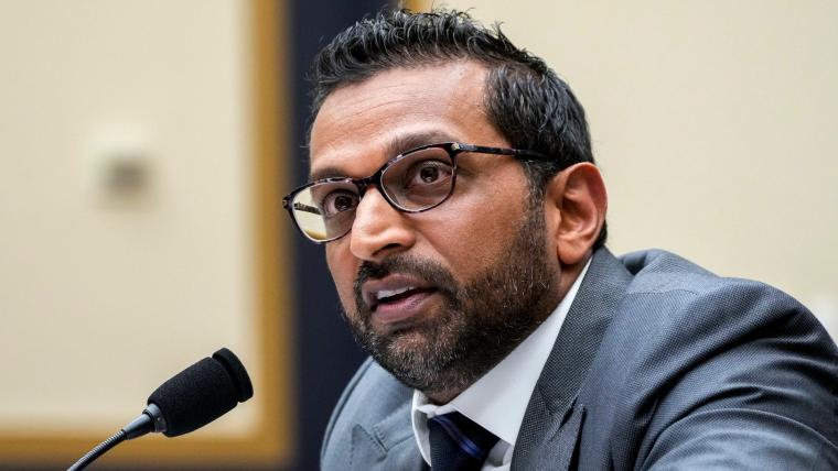 Início Desporto O diretor do Ken FBI, Kash Patel, comemora com o time de...