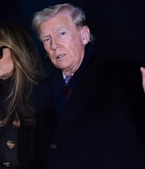O presidente Donald Trump acena para a mídia enquanto dá as mãos à primeira-dama Melania Trump enquanto eles caminham no gramado sul após chegarem à Casa Branca, domingo, 30 de novembro de 2025, em Washington.