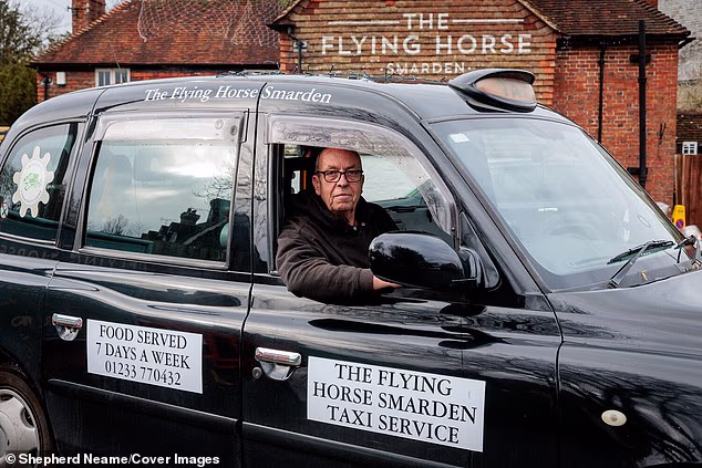 Paul Hartfield, dono do Flying Horse em Smerden, Ashford, Kent, arrecadou centenas de libras para caridade pedindo aos clientes que fizessem uma pequena doação à Motor Neurone Disease Association pelo uso de seu táxi.