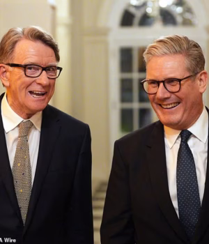 Pairando sobre Reeves estava o anfitrião, o embaixador britânico Mandelson. Foi notável que uma figura tão ilegítima, despedida duas vezes pelo governo e cujo nome foi verificado nos documentos de Epstein, estivesse perto dos níveis mais elevados do poder.