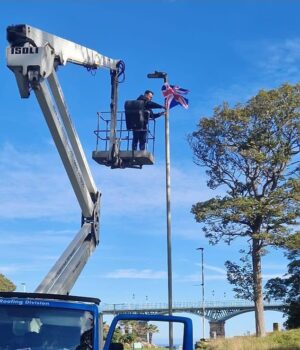 A empresa de limpeza e manutenção do Sr. Haylett, Squeaky Clean (Scarborough) Ltd, foi acusada pela autoridade de “construção não autorizada de bandeiras”.